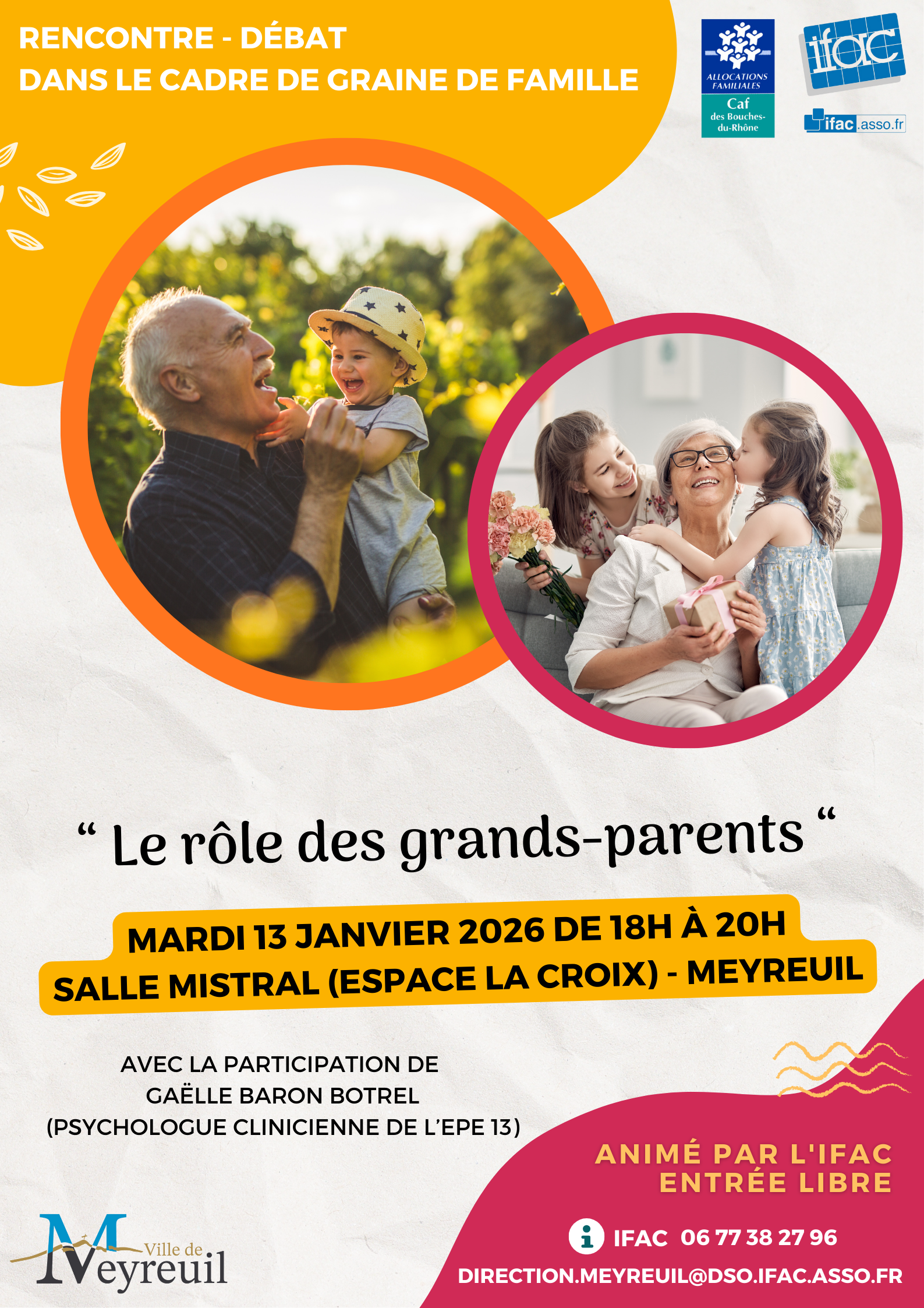Le mardi 13 janvier à 18h à l’espace La Croix, nous vous proposons une rencontre avec Gaëlle, psychologue, pour discuter de la place et du rôle des grands-parents